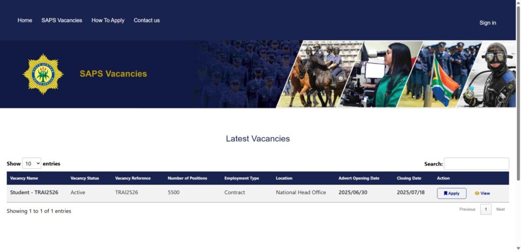 Applications must be submitted via the official SAPS e-recruitment portal: